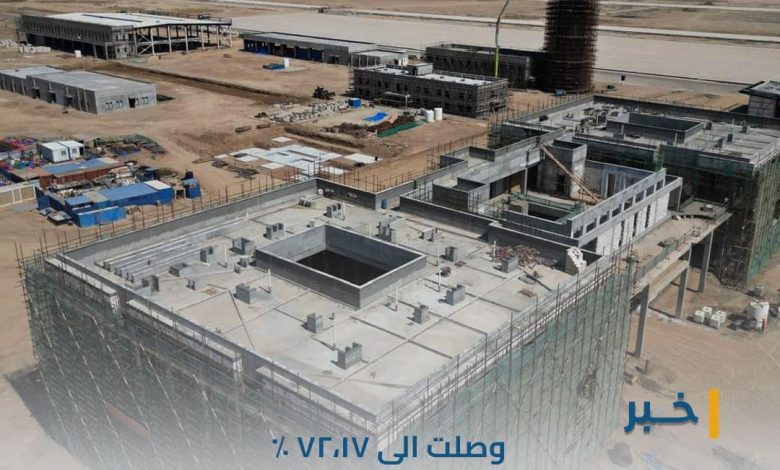 وقال بيان للمكتب الاعلامي للوزارة ، ان نسبة الإنجاز لمطار الناصرية الدولي بلغت مع المواد المشتراة 72،17 %، فيما بلغ عدد العاملين في المشروع 450 عاملا مختصا ، كما تجاوزت عدد الآليات العاملة الى ١٢٠ الية.