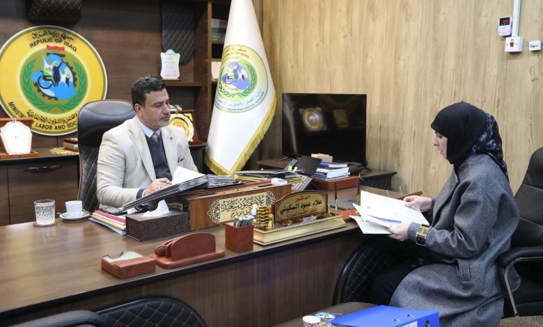 بحث وكيل وزارة العمل للشؤون الادارية والقانونية الدكتور علاء السكيني خلال اجتماع مع مديرة قسم شؤون المرأة الدكتورة نشوة ناصر، اعداد كتابة الخطة الوطنية الثالثة لقرار مجلس الأمن الدولي (1325) للمرأة والأمن والسلام للسنوات (2025- 2030).