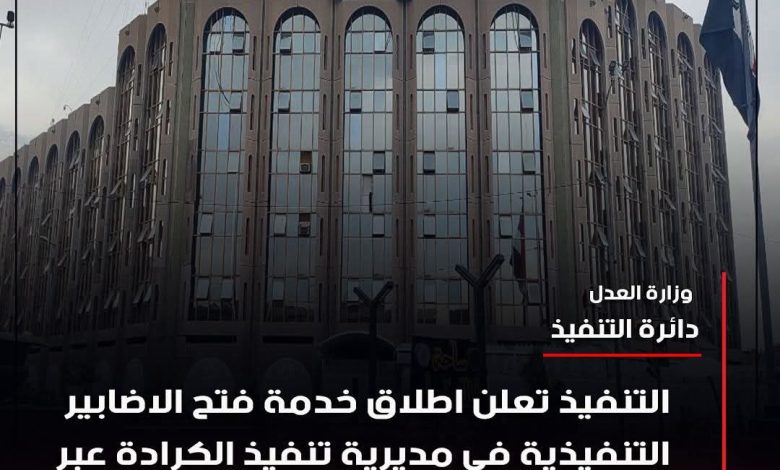 وزارة العدل تعلن اطلاق خدمة فتح الاضابير التنفيذية في مديرية تنفيذ الكرادة عبر بوابة اور الالكترونية