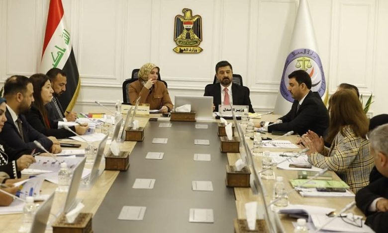 وتناول الاجتماع الذي عقد في مقر الوزارة اليوم ملفات البرنامج الحكومي للوزارة الذي تناول الاجراءات التنفيذية والأوليات والقطاعات والمحاور إذ عملت الوزارة على (٦ ) اولوية ضمن (٥ ) محاور تحت مظلة (٥) قطاعات وب(٣٣) اجراء تنفيذي منها (١٨ ) اجراء قديم و(١٥) اجراء جديد ففي اولوية مكافحة الفساد الإداري والمالي لها (٩) اجراءات و(٣ ) اجراء تحت مظلة دعم الفئات الفقيرة والهشة ومحدودي الدخل و(٢٠) اجراء تحت مظلة العمل بشكل عاجل على تحسين وتطوير الخدمات التي تمس حياة المواطنين وللوزارة (٧ ) أهداف خارج البرنامج الحكومي متضمنة (٥٧ ) اجراءا ، إبتداءا من محور أمن واستقرار العراق فكانت الاولوية المتابعة المستمرة للمؤسسات الامنية لمدى التزامها بمبادى حقوق الإنسان وحماية المواطنين من انتهاكات او تجاوزات بالإضافة إلى محاسبة المقصرين وتضمنت انشاء مجمع اصلاحي للأحداث في البصرة مدة انجازه ٣ سنوات تنتهي ٢٠٢٥ وبكلفة (ثلاثون مليار دينار ) وكذلك انشاء مجمع اصلاحي للأحداث في الديوانية وكذلك استكمال وتوسعة سجن ديالى المركزي / خان بني سعد بكلفة ( ١٦١ مليار و ٨٠٥ مليون دينار وكذلك توسعة سجن بابل وتشيد سجن مركزي في الديوانية وهذه من المشاريع الجديدة ، اما في قطاع التنمية والخدمات الاجتماعية في محور الحماية الاجتماعية ومكافحة الفقر فالاولوية لرعاية الفئات الهشة وذوي الإعاقة من خلال تبني برنامج خاصة لاسيما برامج تعنى بالأرامل وكبار السن تتضمن أنشطة مناسبة لتأهليهم وتمكينهم وتحسين اوضاعهم بعزة وكرامة وتوفير خدمة ورعاية للقاصرين من خلال تشريع بعض القوانين كقانون رعاية الاحداث وتعديل الاول لرعاية القاصرين ومن خلال استثمار أموال القاصرين ( استثمار الودائع) إذ يعد مشروعا جديدا. اما في قطاع الاقتصاد والمال في محور مكافحة الفساد وهدر المال العام فالاولوية لتبني خطة محكمة لاسترداد الاموال المهربة واجراء ملاحقة دولية قانونية لضمان استرجاع تلك الأموال والمباشرة بالخطة من خلال اقامة دعاوى خارج العراق بهدف إرجاع الاموال المهربة ، فضلا عن الاتمتة الاكترونية للدوائر الوزارة ودوائر التسجيل العقاري والجباية الالكترونية في دوائر التسجيل العقاري والعمل بنظام الوثائق المؤمن الخاص بصحة الصدور في دوائر التسجيل العقاري وأتمتة الكتاب العدول والجباية الالكترونية في دوائر الكتاب العدول والعمل بنظام الوثائق المؤمن الخاص بصحة الصدور في دوائر الكتاب العدول واتمتة دوائر التنفيذ والجباية الالكترونية في دوائر التنفيذ والعمل بنظام الوثائق المؤمن الخاص بصحة الصدور في دوائر التنفيذ ودوائر الاصلاح ونظام ادارة النزلاء والمودعين وربطها ضمن شبكة معلوماتية (٣٥) قسم ومدرسة اصلاحية وتفعيل أدوات الدفع الالكتروني على النزلاء والمودعين ،واجراء شبكة معلومات الوزارة ونظام ادارة الموارد البشرية واعتماد البصمة الالكترونية ، وتشريع قانون الوساطة العقارية وتعديل قانون التسجيل العقاري وتعديل الرسوم العدلية، اما مايتعلق بقطاع الاعمار والبنى التحتية فمن خلال انشاء مشاريع المجاميع والدوائر العدلية في عدة محافظات كمحافظة الديوانية غماس والحمزة وكربلاء وإنشاء السجون الإصلاحية في الكوت والنجف .