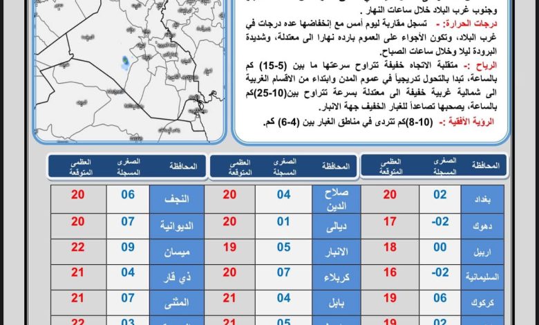 النشرة الجوية اليوم السبت الموافق ١/شباط والايام التي تليه والصادرة عن الهيئة العامة للانواء الجوية والرصد الزلزالي _قسم التنبؤ الجوي ويتم تحديثها يوميًا حسب مستجدات الحالة الجوية ( بمشيئة الله تعالى) .ق
