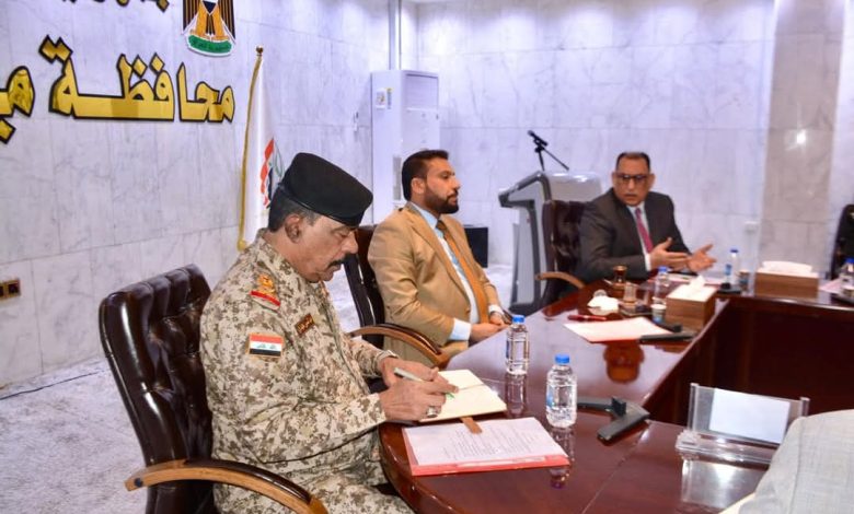 عقد محافظ ميسان “حبيب ظاهر ” رئيس اللجنة الأمنية في المحافظة اجتماعاً أمنياً موسعاً في ديوان المحافظة بحضور قائد عمليات ميسان اللواء الركن عبد الحسين خفيف لازم ومساعد وكيل وزارة الداخلية لشؤون العشائر إلى جانب القيادات الأمنية في المحافظة وذلك لمناقشة ملف النزاعات العشائرية وآفة المخدرات التي تهدد أمن واستقرار المحافظة.