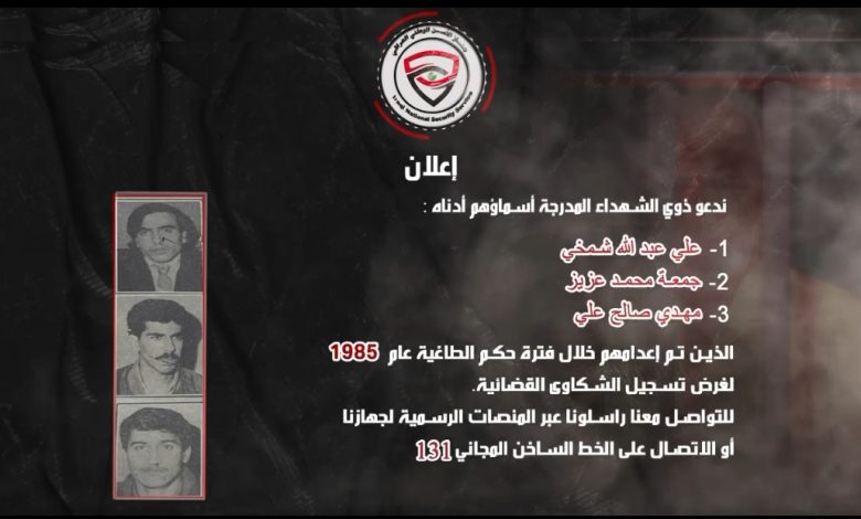 يدعو جهاز الأمن الوطني العراقي ذوي الشهداء المدرجة أسماؤهم أدناه: