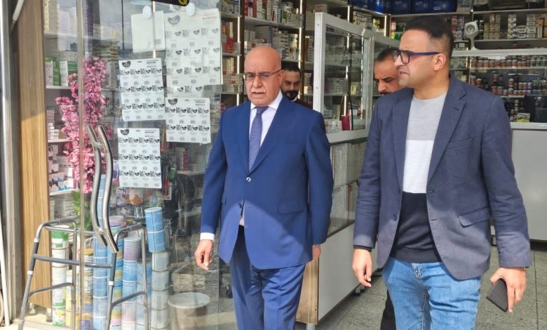 مبينا زيارته لعدد من الصيدليات والمذاخر الأهلية في العاصمة بغداد بهدف التحقق من الأدوية المتداولة وآليات الخزن المتبعة، ومدى الالتزام بالتسعيرة الدوائية المعتمدة، مع التشديد على أهمية الالتزام بالأسعار الرسمية