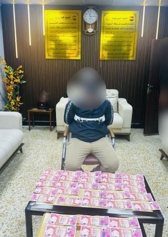 بعد ورود إخبار من أحد المواطنين يفيد بوجود شخص يقوم بالنصب والاحتيال والسرقة ويستخدم العملة المزورة في تعاملاته, تم تشكيل فريق عمل من (قسم ومركز شرطة الزوراء ومركز شرطة أكد) في شرطة بغداد الرصافة, ليتم متابعة المتهم ونصب كمين محكم له بمساعدة أحد المواطنين والقبض عليه وضبط مبلغ من المال (المزور) بحوزته،