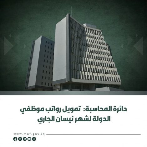 تباشر دائرة المحاسبة في وزارة المالية تمويل رواتب موظفي الدولة لشهر نيسان الجاري، وتدعو الدائرة وحدات الإنفاق في الوزارات والمحافظات والجهات غير المرتبطة بوزارة إلى إرسال مخوليهم لاستكمال متطلبات تمويل الرواتب، مع التأكيد على الالتزام بجدول التمويل الشهري المعتمد واستيفاء كافة الإجراءات المطلوبة