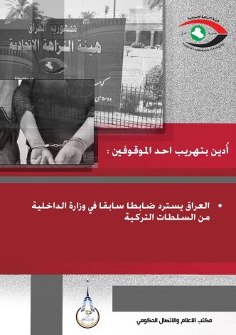 أعلنت هيئة النزاهة الاتحاديَّة تمكُّنها من استرداد أحد المُدانين الهاربين من جمهوريَّة تركيا، سبق أن أُدِيْنَ بتهريب أحد الموقوفين.