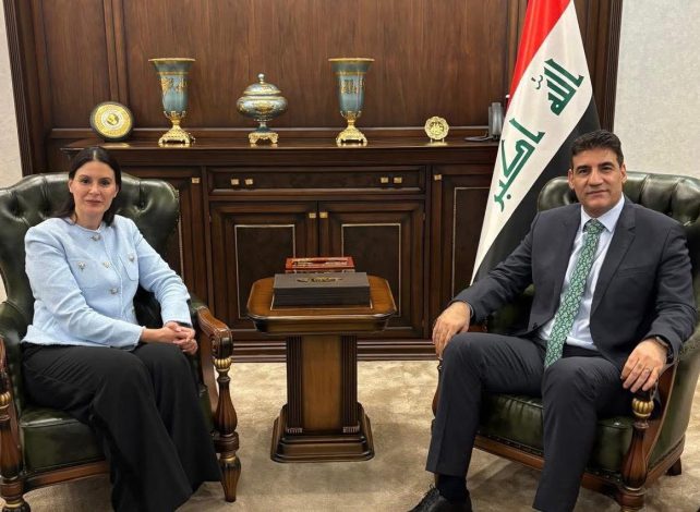 التقى وكيل وزارة الخارجية لشؤون العلاقات متعددة الأطراف والشؤون القانونية، السفير شورش خالد سعيد، يوم الأحد الموافق 1 حزيران 2025، بالسيدة حنان هنزاز، الممثلة الخاصة لمدير عام منظمة الأمم المتحدة للتنمية الصناعية (اليونيدو) للمنطقة العربية، وذلك في مقر الوزارة، بحضور الدكتور فاضل رحيم، رئيس دائرة المنظمات والمؤتمرات الدولية، وعدد من موظفي الدائرة ومكتب السيد الوكيل.