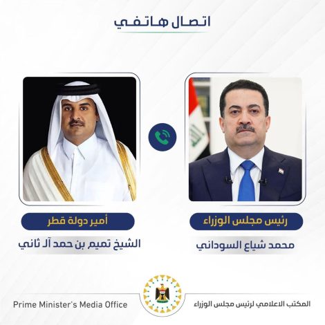 رئيس مجلس الوزراء السيد محمد شياع السوداني يبحث هاتفياً مع أمير دولة قطر مستجدات الأوضاع في المنطقة