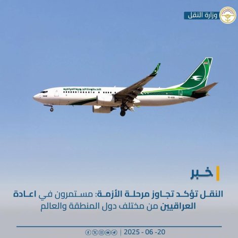 وتجدد وزارة النقل التزامها بمسؤولياتها الوطنية والإنسانية، مؤكدة أن الخطوط الجوية العراقية ستبقى الحصن الجوي الموثوق لكل العراقيين، حاضرة في كل