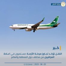 النقل تؤكد تجاوز مرحلة الأزمة: مستمرون في اعادة العراقيين من مختلف دول المنطقة والعالم …… أعلنت وزارة النقل ،اليوم الجمعة،…